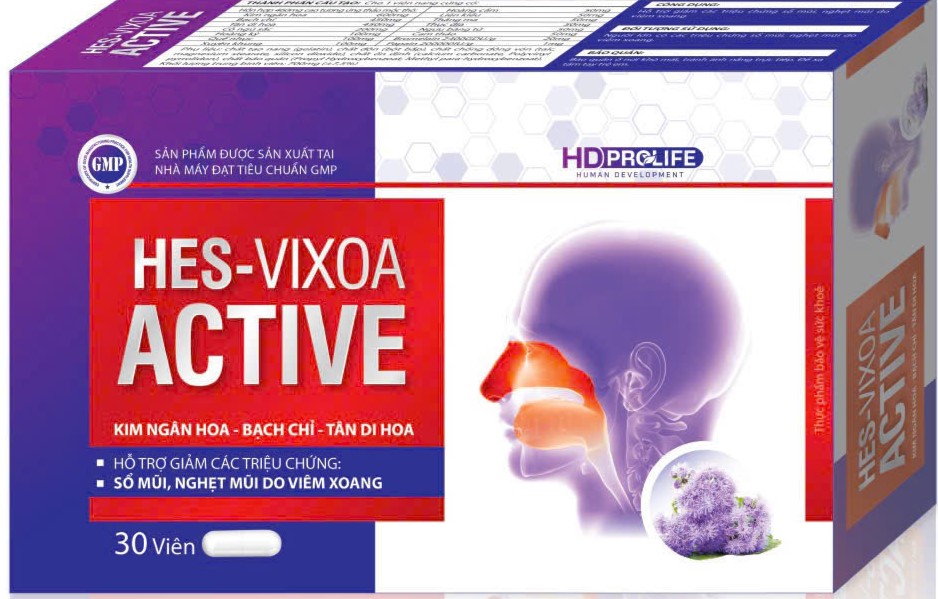 HES-VIXOA ACTIVE là thực phẩm bảo vệ sức khỏe được thiết kế đặc biệt nhằm hỗ trợ cải thiện các vấn đề liên quan đến viêm xoang, giúp giảm các triệu chứng khó chịu như nghẹt mũi, đau đầu, và tăng cường sức đề kháng cho vùng mũi họng. Sản phẩm thuộc công ty HD-Prolife phân phối.