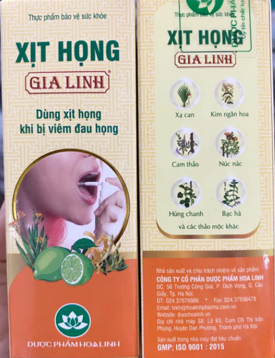 Xịt họng Gia Linh là sản phẩm được nghiên cứu dưới dạng xịt được chiết xuất từ dược liệu thiên nhiên, hỗ trợ giảm đau rát họng và làm dịu niêm mạc, phù hợp cho người bị viêm họng. Với cơ chế phun sương trực tiếp vào khoang miệng và họng, Xịt họng Gia Linh giúp giải phóng nhanh các hoạt chất, từ đó giảm nhanh các triệu chứng đau rát, ngứa họng, ho có đờm, đồng thời hỗ trợ tiêu diệt vi khuẩn trong vòm họng, mang lại cảm giác dễ chịu và thông thoáng hơn. Xịt họng Gia Linh được phân phối bởi Công ty TNHH Dược phẩm Hoa Linh.